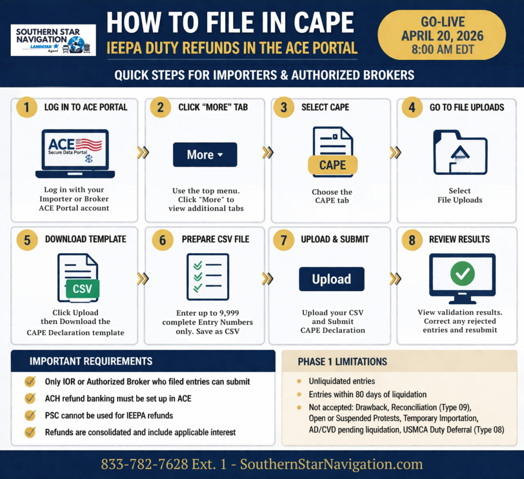 CBP has officially confirmed the launch of the IEEPA duty refund process through the new CAPE system.