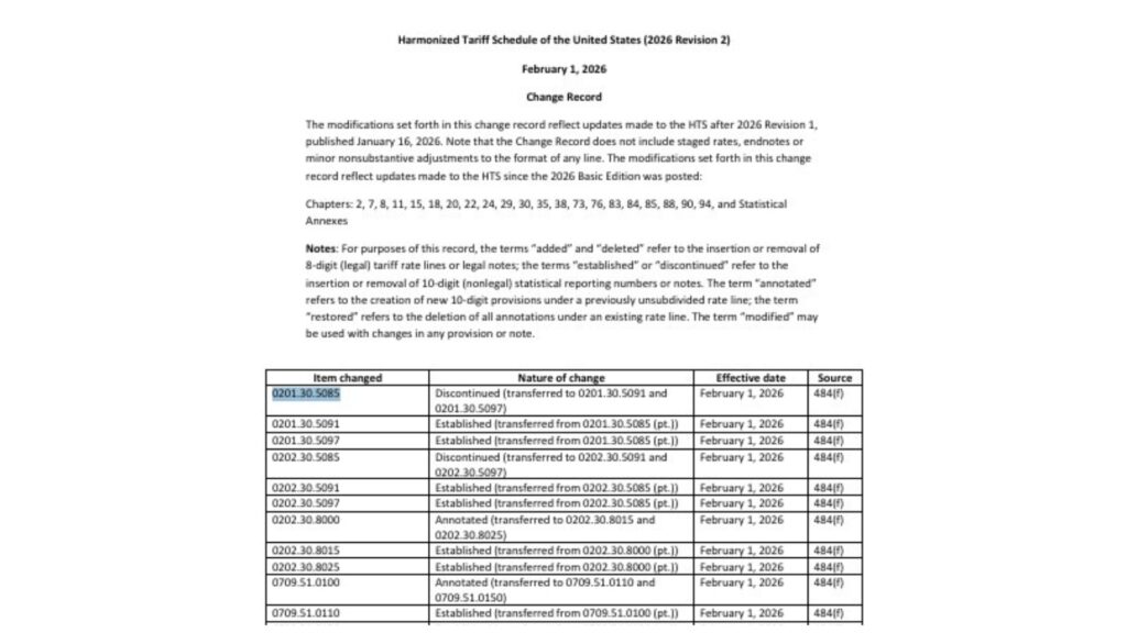 U.S. Customs implemented the 2026 HTS Revision 2 updates on February 1, introducing dozens of classification changes across a wide range of product categories, including food products, chemicals, machinery, electronics, metals, and industrial components. These updates include discontinued codes, newly established tariff lines, and statistical refinements at the 10-digit level. While most of the changes do not directly impact duty rates, they do affect how products must now be declared on entries.